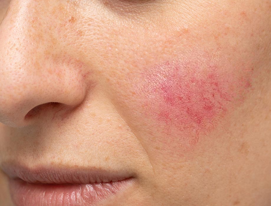 Sanfte Spezialbehandlung mit Gesichtslymphdrainage bei Couperose & Neigung zu Rosazea. Die Haut wirkt beruhigt und weniger gerötet